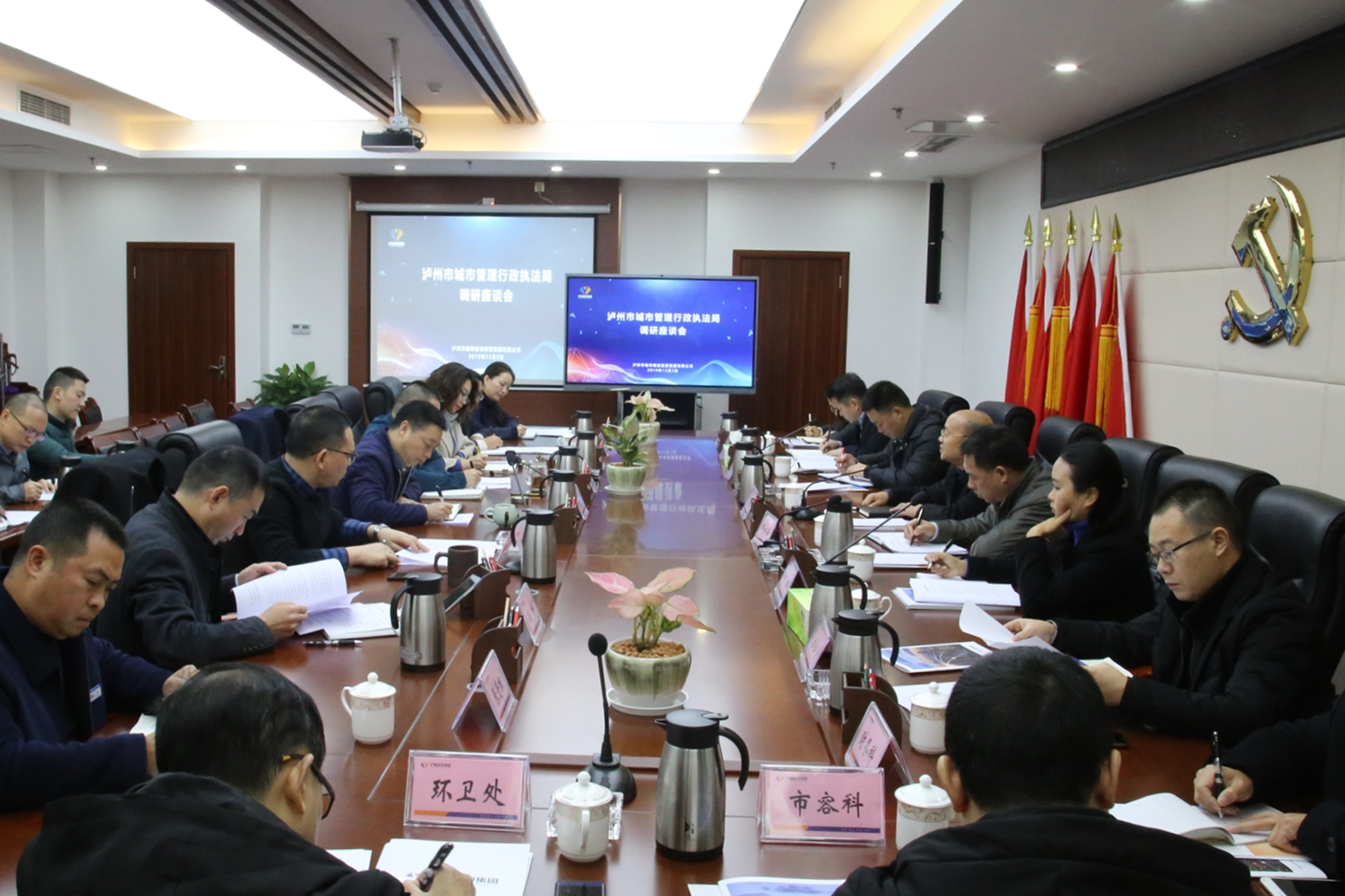 在調(diào)研座談會(huì)上,瀘州城投集團(tuán)下屬智慧科技公司匯報(bào)了城投地理信息數(shù)據(jù)庫、數(shù)字政府及智慧城管建設(shè)情況,調(diào)研組與城投集團(tuán)就如何利用數(shù)字化手段經(jīng)營(yíng)城市,形成“多元共治”格局進(jìn)行了深入探討。